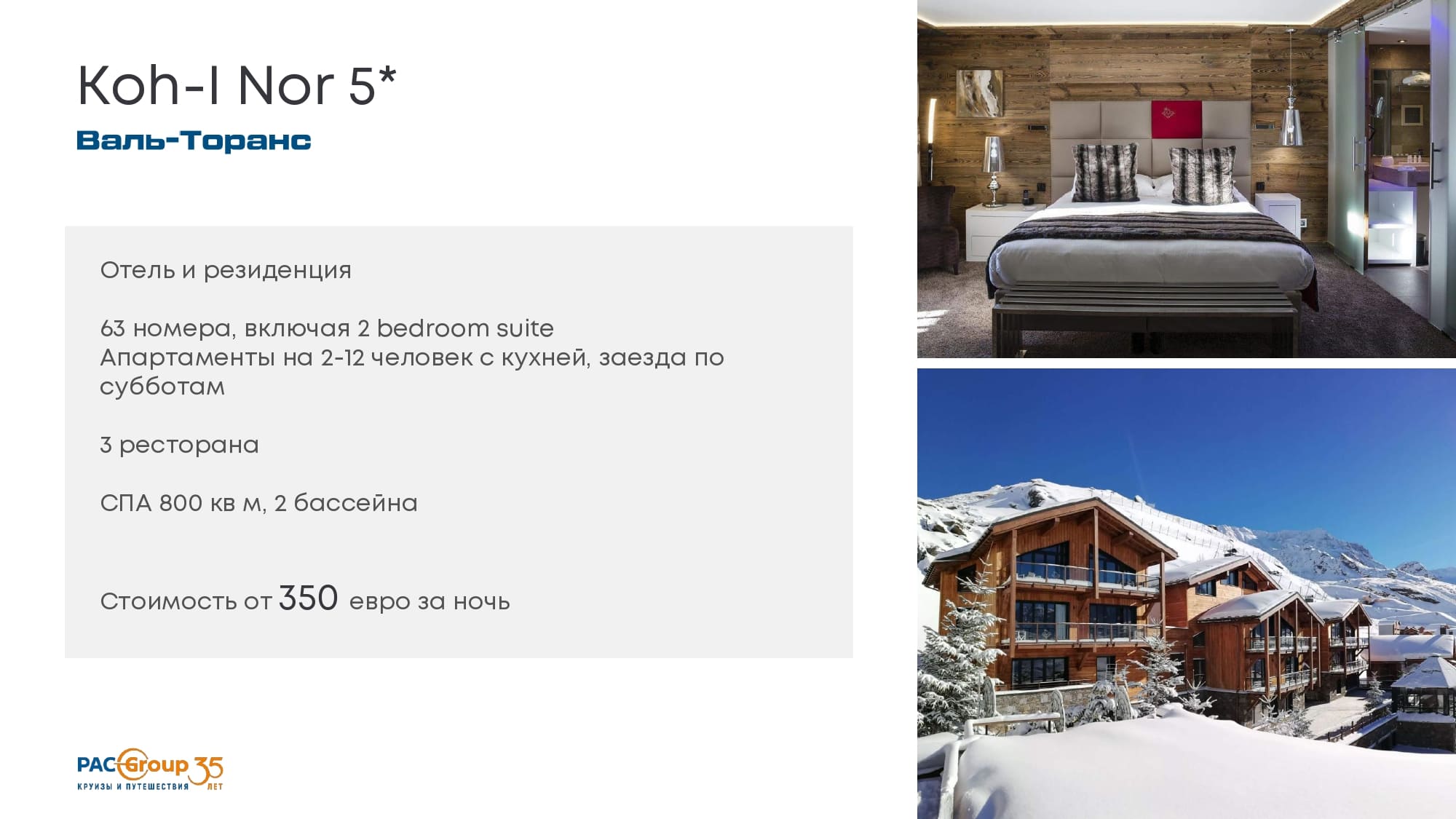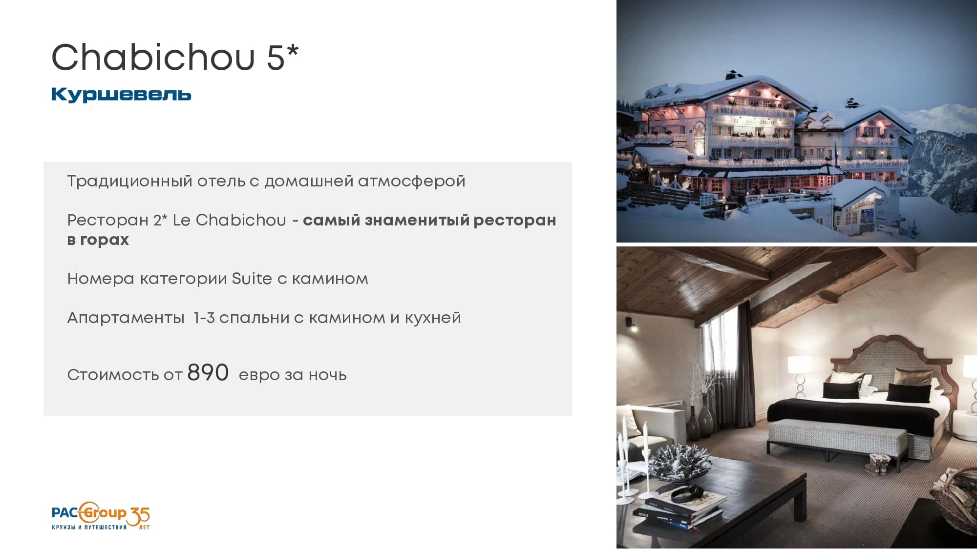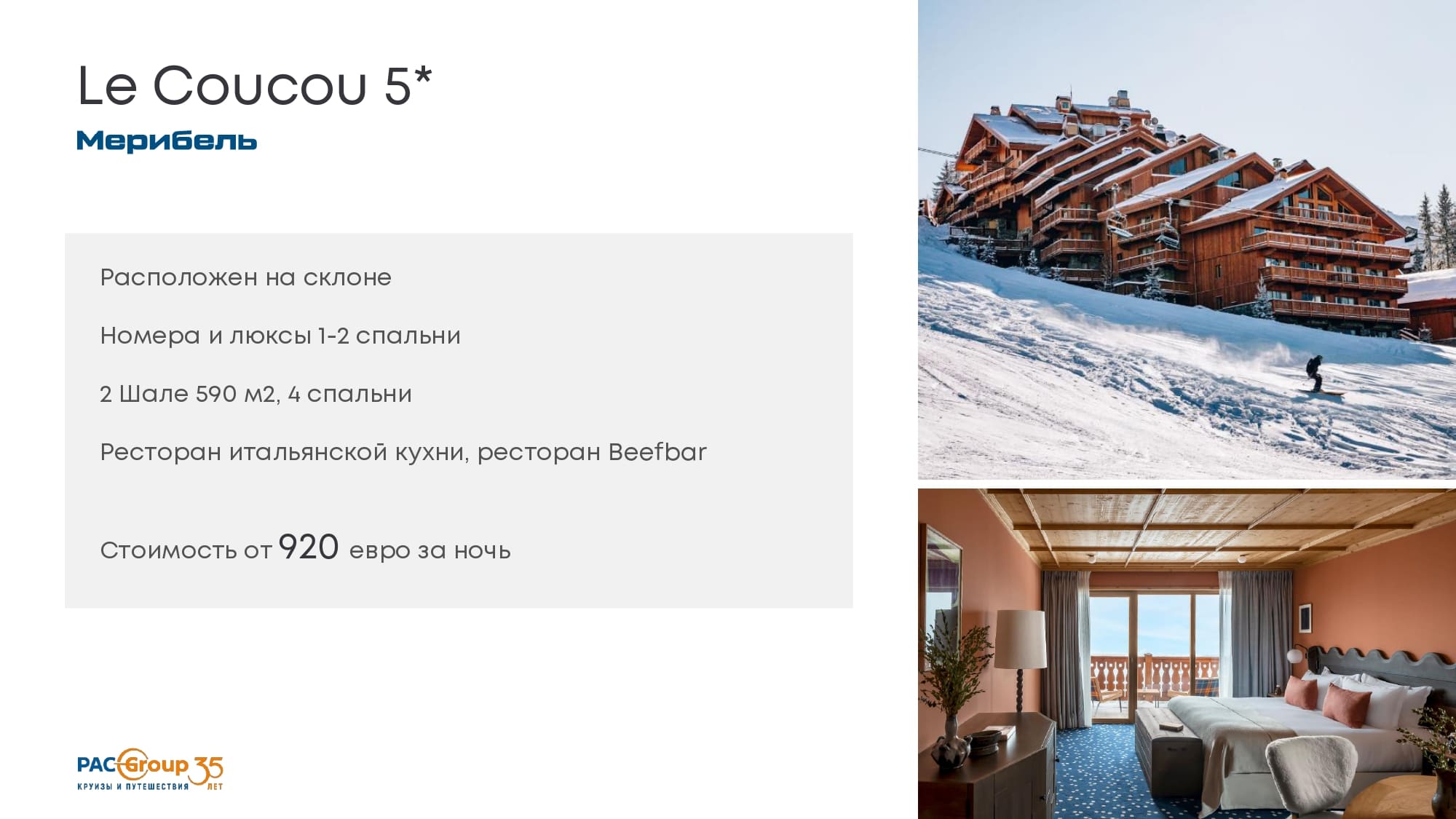 Особенность Куршевеля - нет громких междунарожных гостинчиных цепочек, все локальное. Новый отель - второе исключение. Есть еще Иксэнсис?.