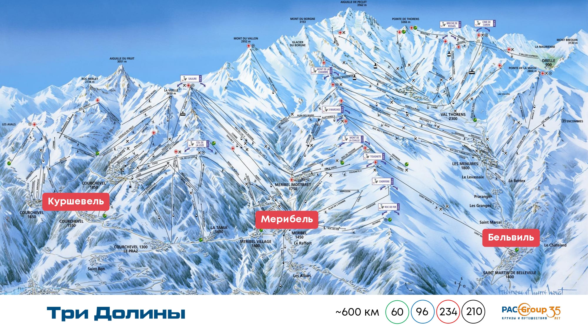 • Самый высокогорный курорт в трёх долинах, высота 2100 метров. (учитывать медицинские показания)