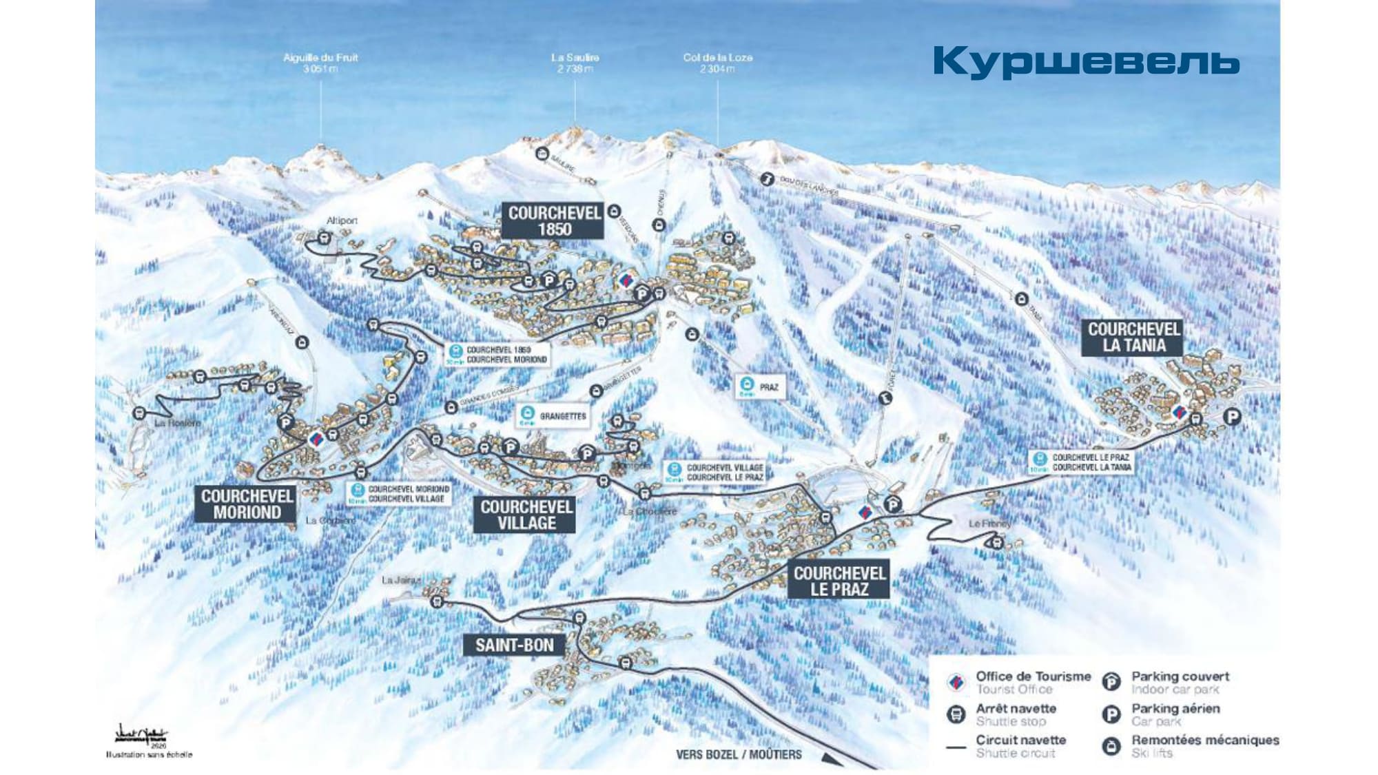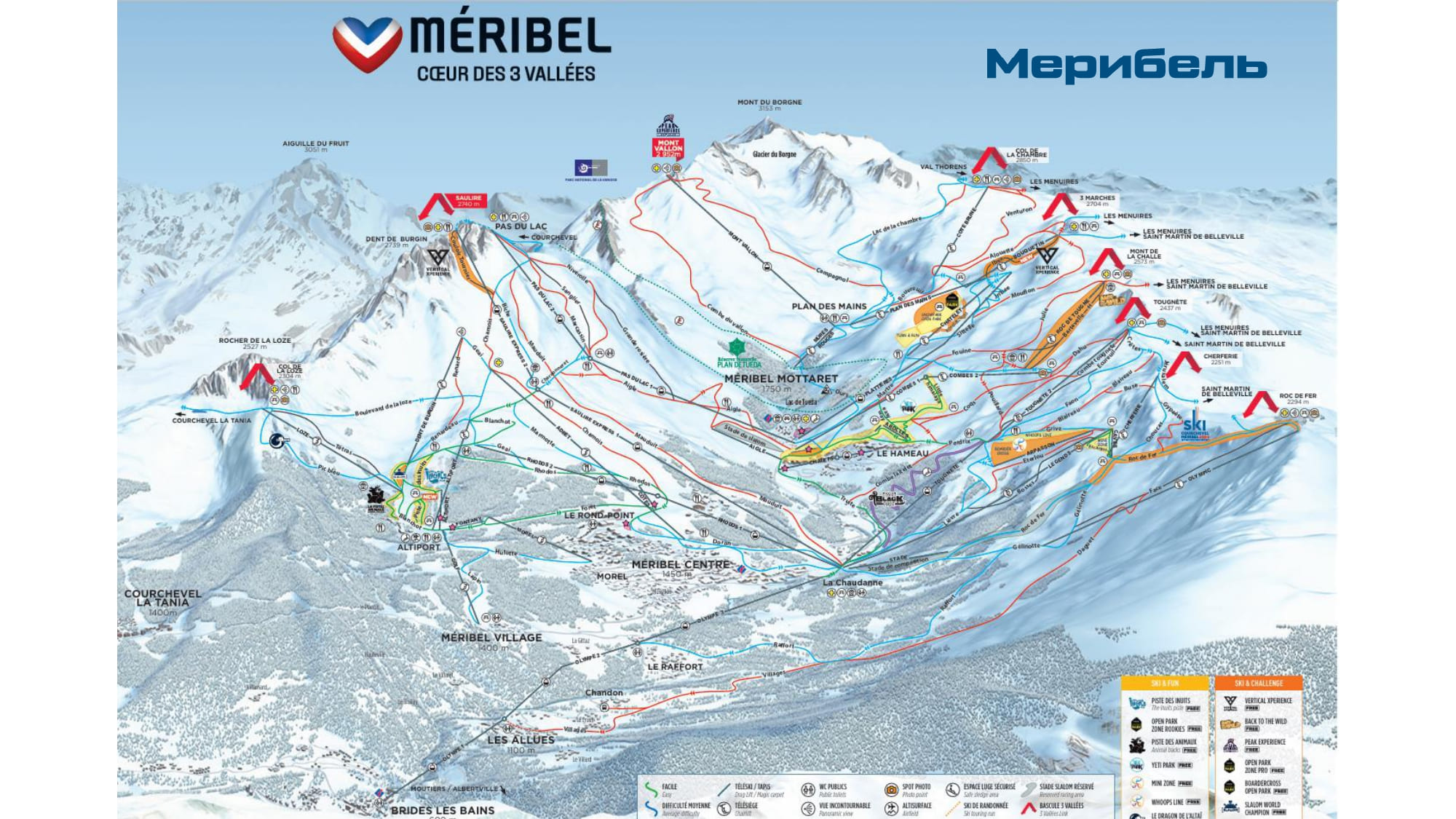 Куршевель — самый известный горнолыжный курорт Франции.На карте Куршевель представлено несколько станций: