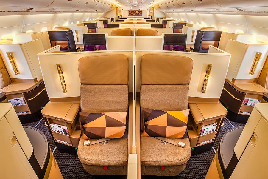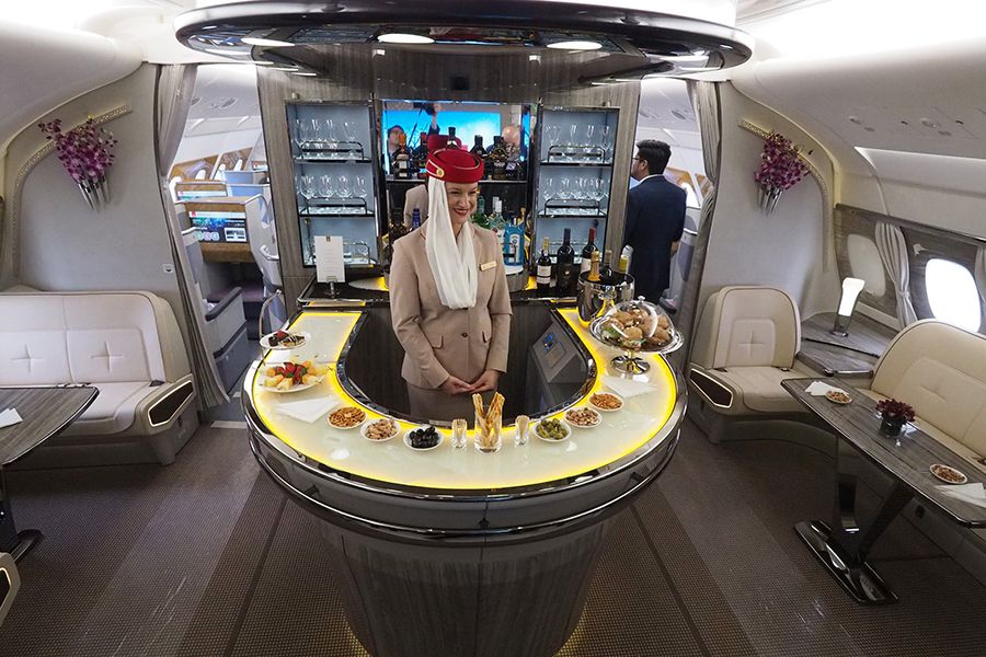В салоне Первого класса вы почувствуете себя, как на борту личного самолета. Индивидуальная каюта с полностью раскладывающимся в кровать креслом, изысканное меню и персональное обслуживание, душ-СПА с личными косметическими наборами Bulgari, зона отдыха с коктель-баром и премиальными напитками на борту А380, доступ в залы ожидания в аэропортах.