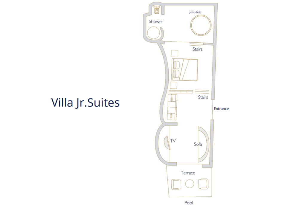 ВИЛЛА В БЛОКЕ (с отдельным входом в каждый номер/виллу), ВИЛЛА-ОЗЕРНЫЕ ДОМИКИ (отдельный вход), ВИЛЛА SWIM-UP (с персональным спуском в общий бассейн), SWIM UP (лестница к персональному спуску в общий бассейн), Джуниор-вилла |