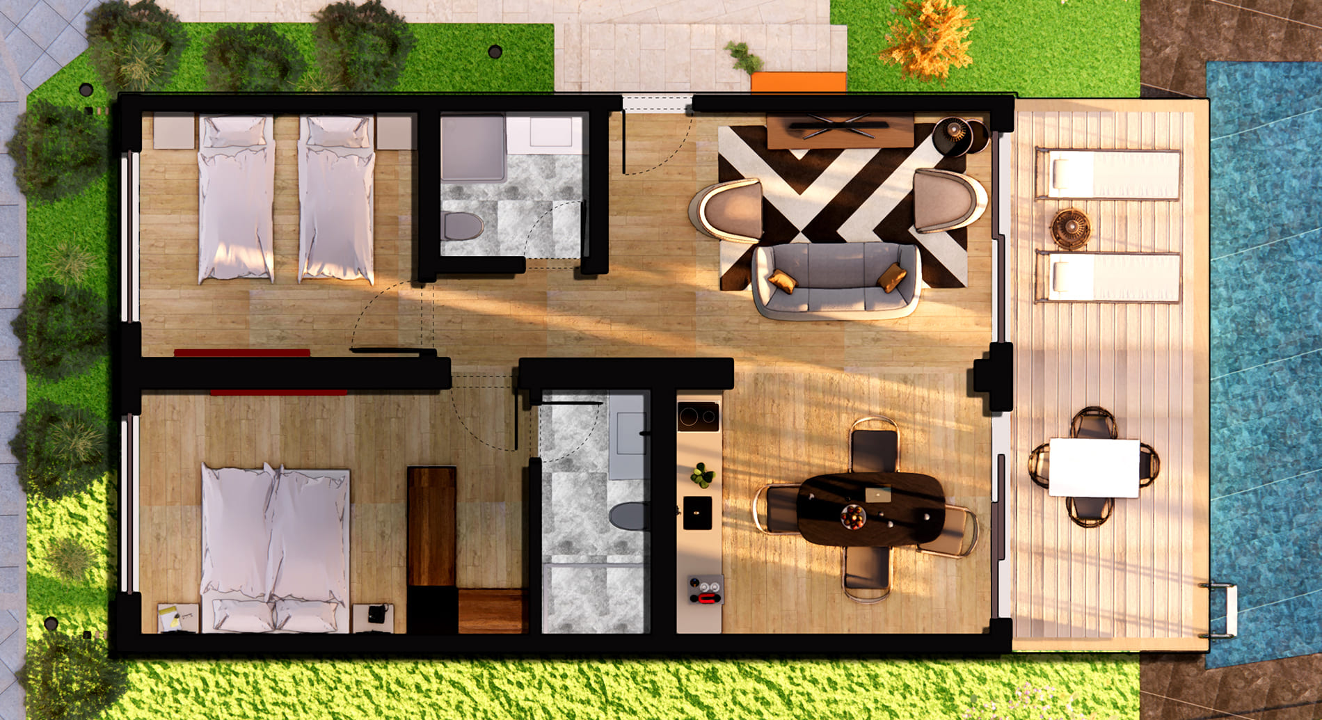 СЮИТ / СЕМЕЙНЫЙ НОМЕР, SWIM UP (персональный спуск с террасы в общий бассейн), Сюит 3 комнатный |