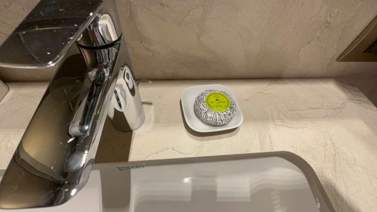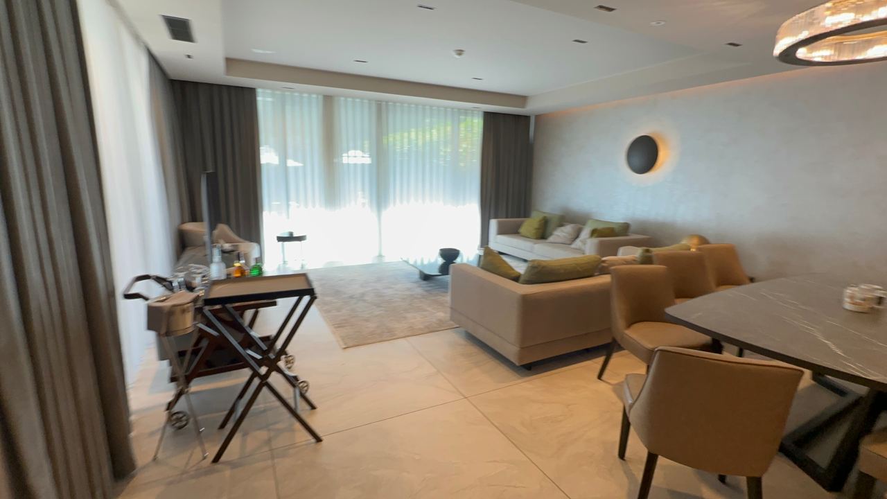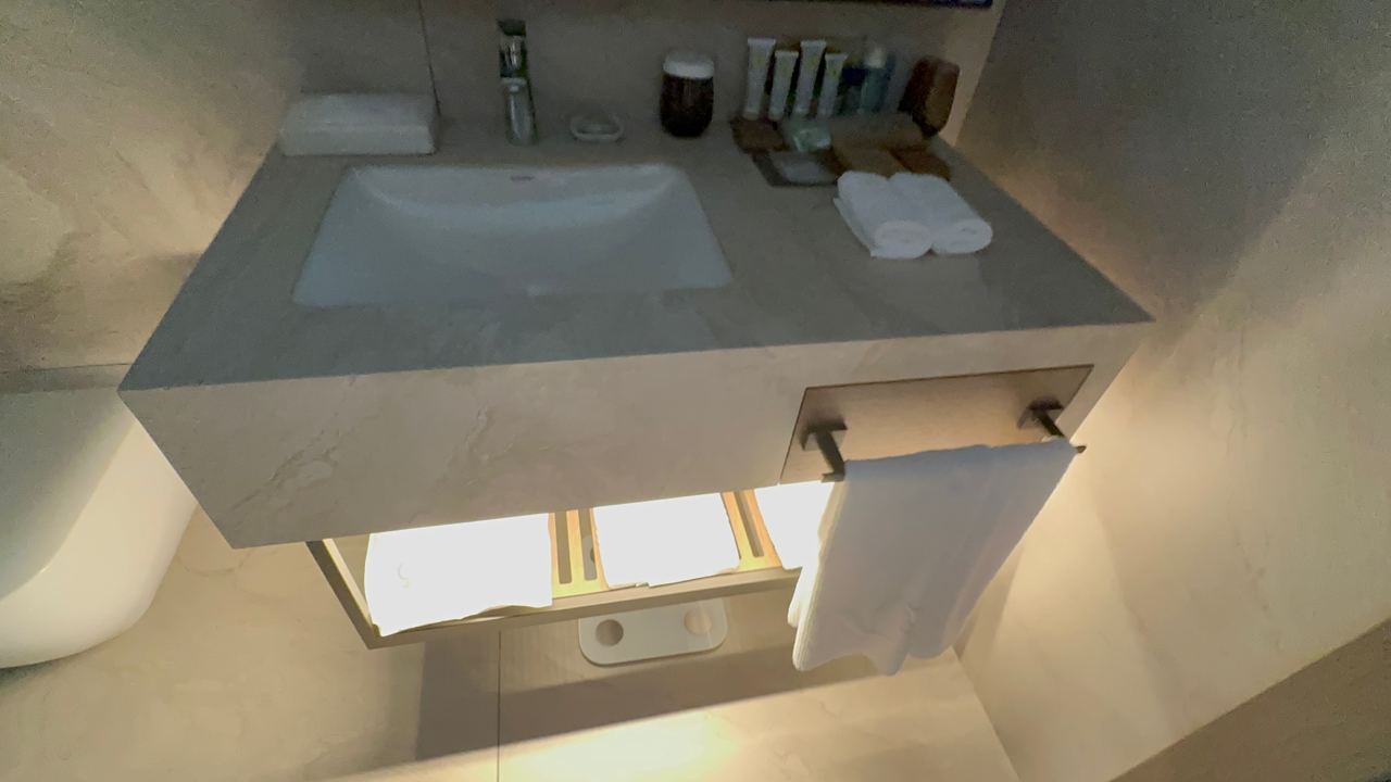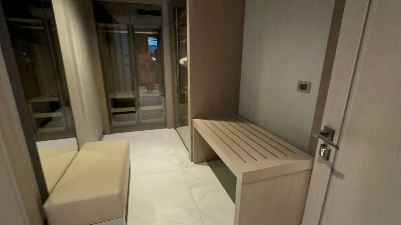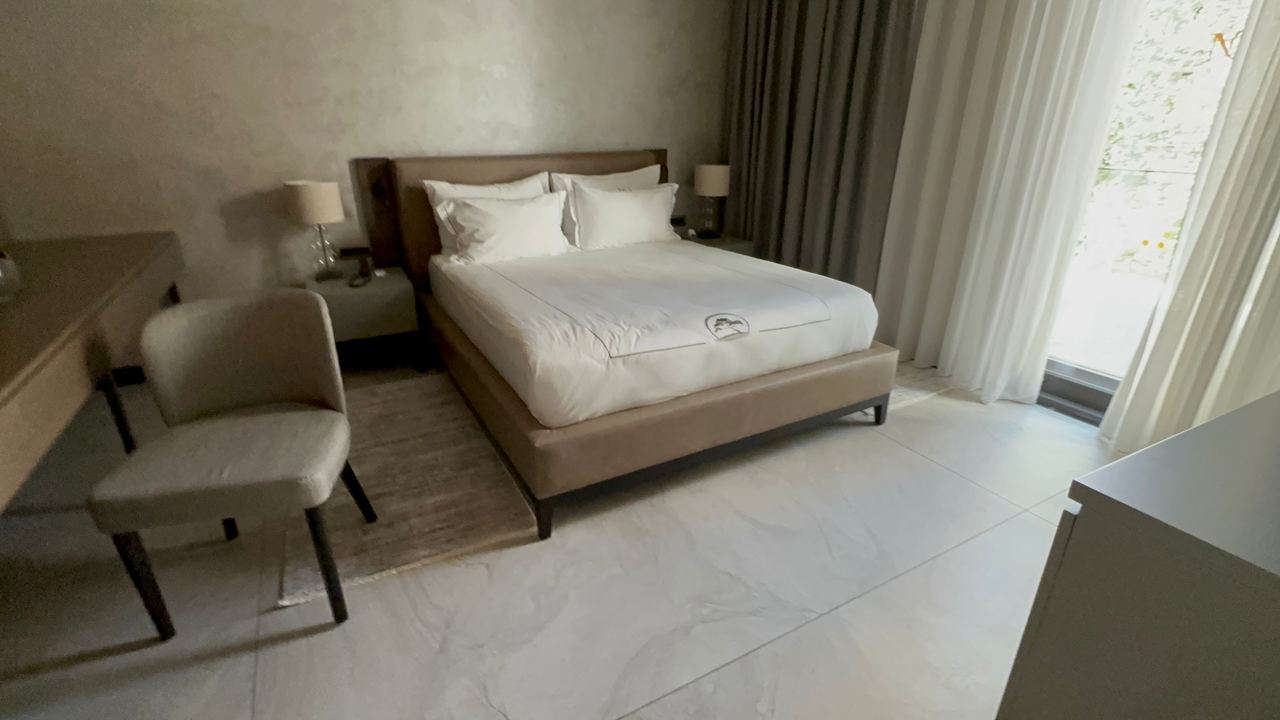 Банные и душевые принадлежности премиального класса, Весы цифровые (электронные), Два душа, Джакузи, Зеркало для макияжа/бритья с подсветкой, Пляжная сумка, Подставка под багаж, Пол - керамическая плитка, Тапочки, Тропический (дождевой) душ, Фен, Халаты, Чехол для одежды |