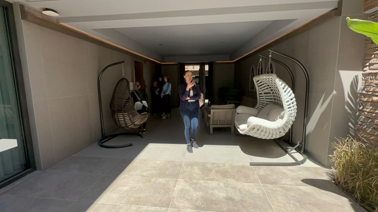 Пол - керамическая плитка NG Kutahya Ceramics, Большое панорамное окно, Подсветка в шкафу |