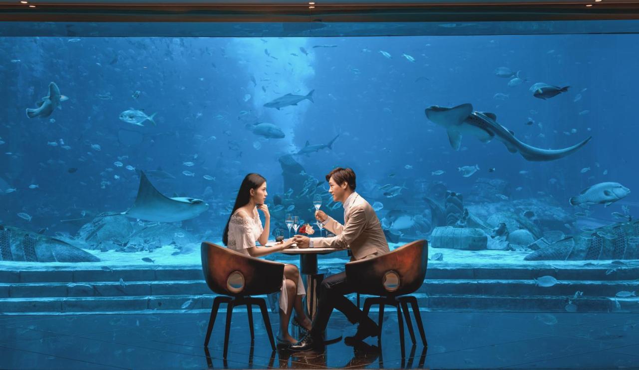 - Poseidon Underwater Suite (нижний этаж, вид на большой аквариум (окно на бассейн с морскими животными), гостиная, 2 спальни, доп. кровать не предоставляется, макс. 4+1 чел., 340 м2)