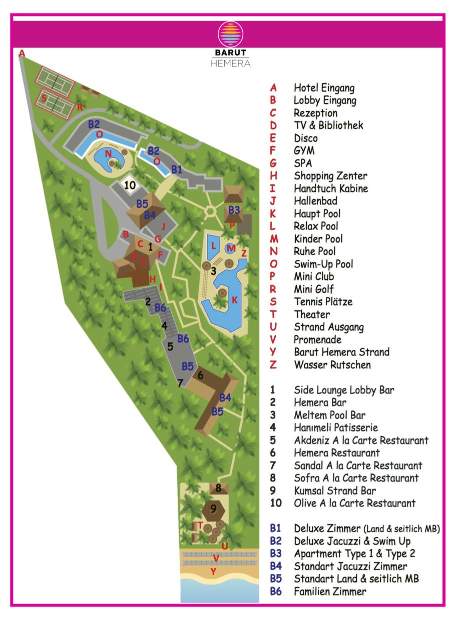 - 4 однокомнатных Deluxe Room Garden View Pet Friendly (номер для размещения гостей с животными, расположены в корпусе Deluxe – на 1 этаже с террасой и выходом на лужайку, макс. 2+2 чел., 34 м2); Barut Hemera - единственный отель в сети, который предлагает размещение с животными до 8 кг (25 евро/сутки).