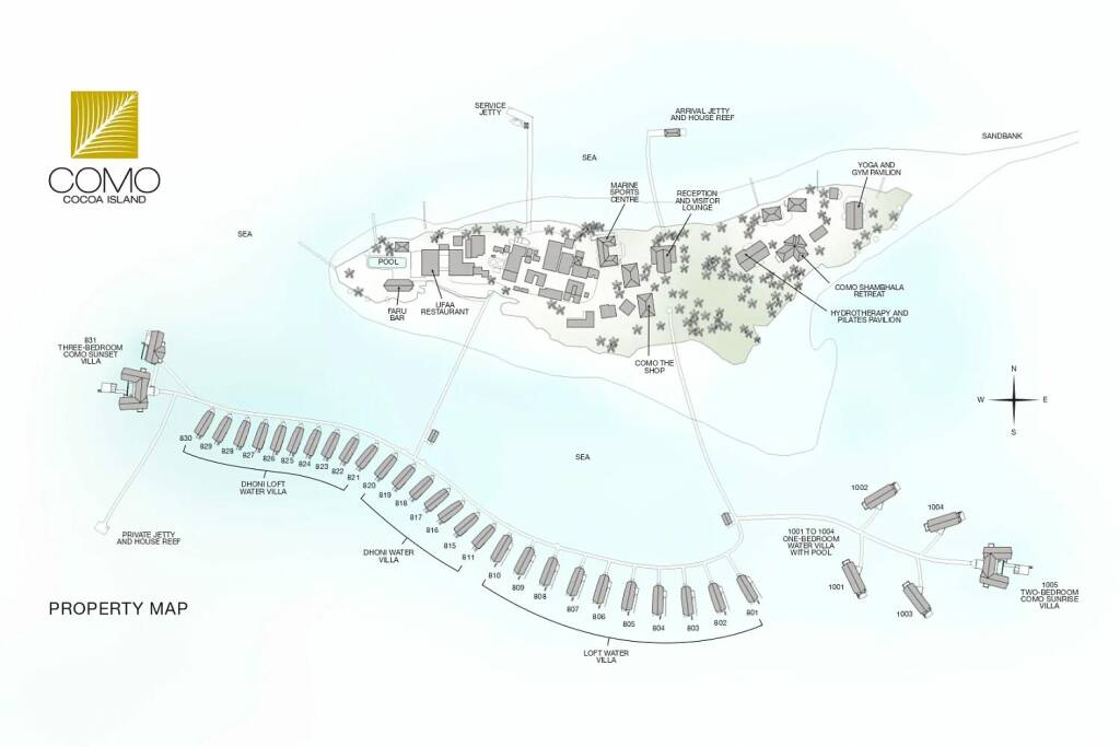 1 Three-Bedroom COMO Sunset Villa (590 м2, макс. 8+1 или 6+3 чел.). Резиденция с тремя спальнями с видом на закат. Состоит из двух, объединенных между собой деревянным мостиком, вилл: одна вилла с одной спальней, вторая – с двумя. Односпальная вилла – спальня, просторная терраса, отдельная гостиная, ванная комната, бассейн и тренажерный зал. Двуспальная вилла – 2 спальни, 2 ванные комнаты, отдельная гостиная, терраса, бассейн. Услуги батлера.