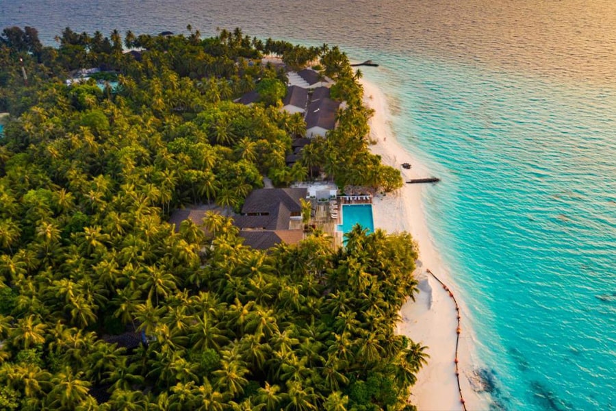 30 минут на гидросамолете (только в светлое время суток) или 25 минут на самолете внутренних авиалиний до аэропорта Маамигили (в соответствии с расписанием рейсов) + 30 минут на катере до острова |