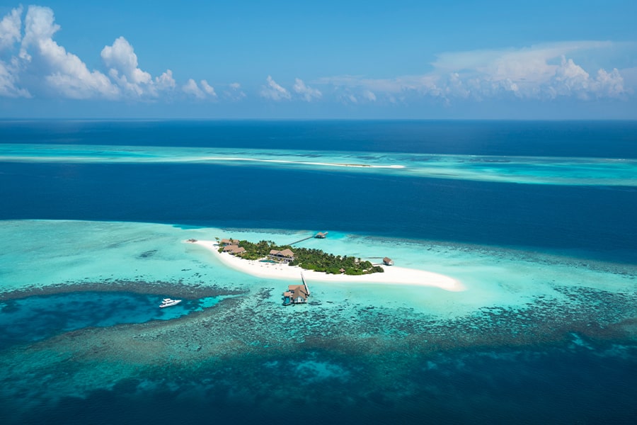 Баа атолл, на уединенном частном острове, окруженном заповедной морской территорией, которая охраняется ЮНЕСКО |