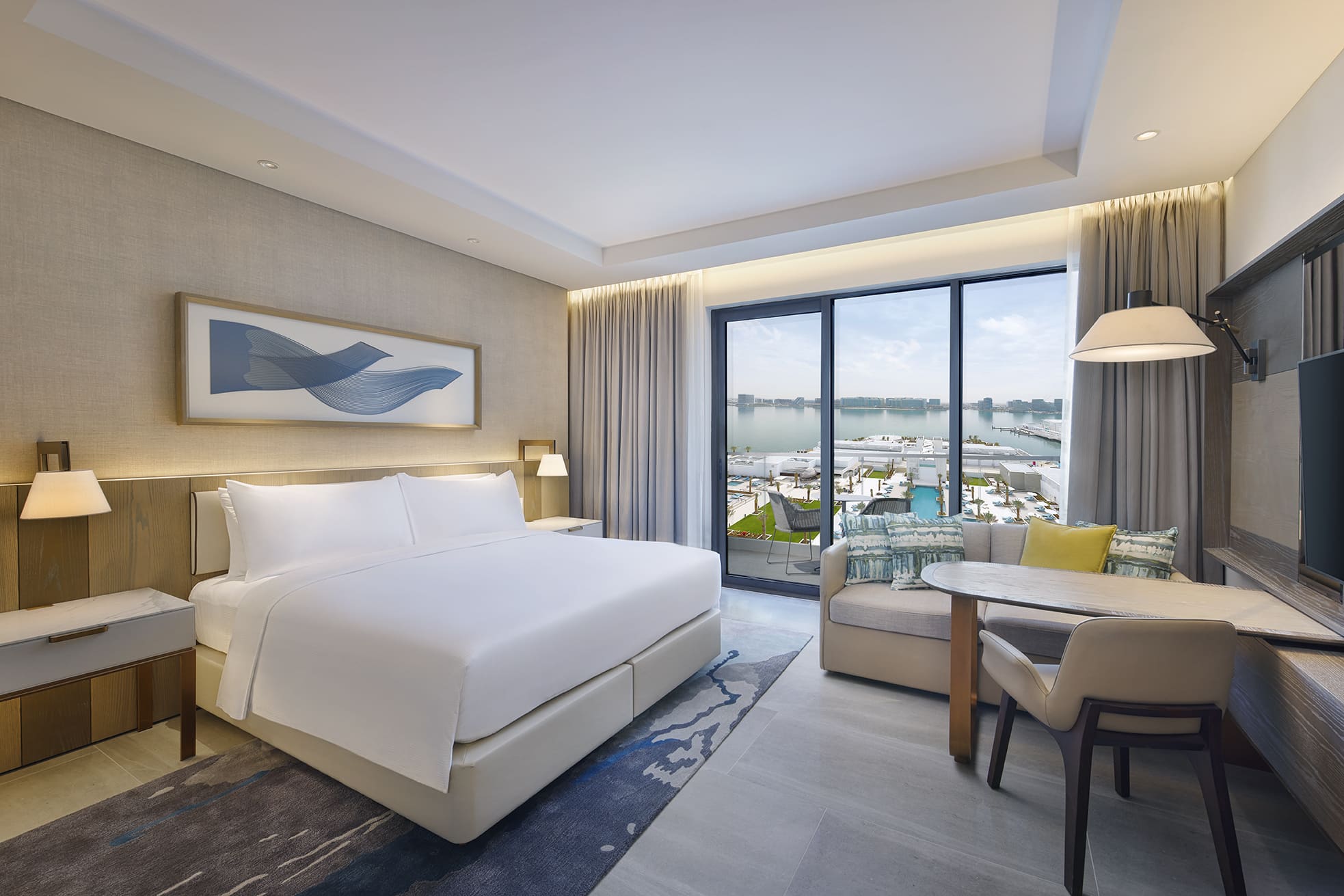 - King One Bedroom Suite With Yas Theme Park Access (гостиная и спальня, двуспальная кровать, балкон, макс. 3+1 чел., 58 м2);