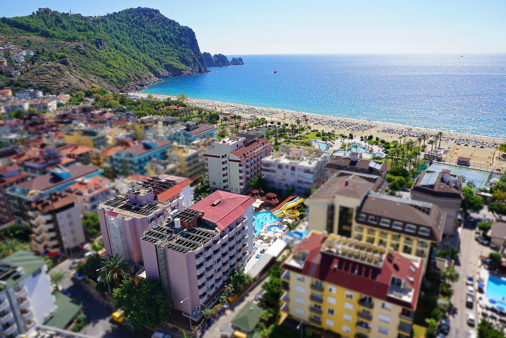 Спутниковая карта Аланьи с районами и отелями (Турция)