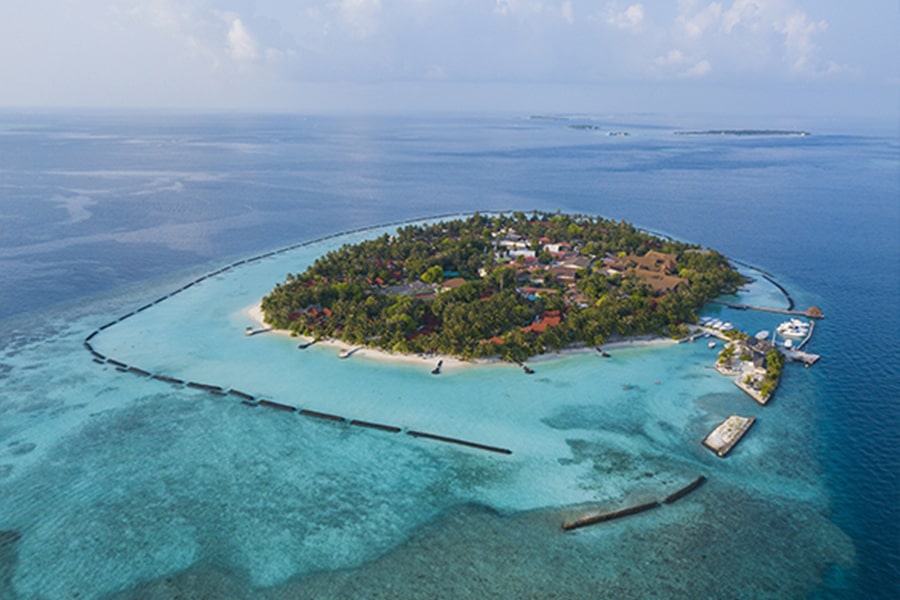 Весь остров окружен очень хорошим пляжем, который сужается и расширяется в разных местах, в зависимости от миграции песка в течение года. Вокруг всего острова установлен искусственный барьер, защищающий пляж от эрозии. Он обеспечивает курорту закрытую лагуну и безопасное плавание даже с маленькими детьми. Вход в воду очень комфортный, сам остров и песок полностью натуральные. Так как курорт находится очень близко к Мале, практически с любой точки острова будут видны местные острова, такие как Мале / Хулумале или ближайшие отели-курорты, а также может ощущаться близость аэропорта в качестве пролетающих рядом гидросамолетов. |