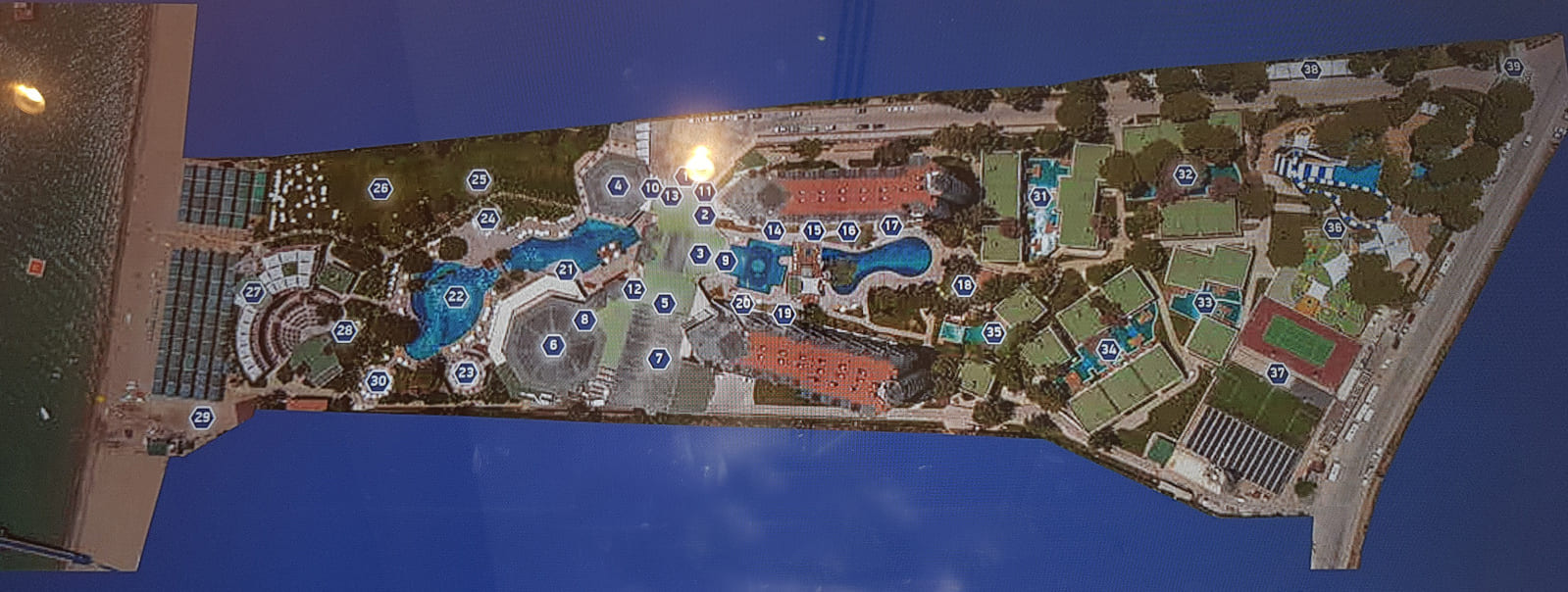 Расположение: в 35 км от аэропорта, в 40 км от центра г. Анталья, в 4 км от поселка Белек, на берегу моря.Отель построен в 2002 году, общая площадь 60 000 м2, ежегодно проводится косметический ремонт.