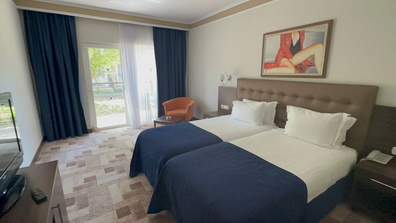 - 89 Standard Main Building Sea Side (номера расположены в сторону моря, но моря не видно, в главном корпусе и 18 номеров в главном корпусе клуб, спальня (1 двуспальная или 2 односпальные кровати), 1 ванная комната (душ в главном корпусе и ванная в клубном главном корпусе), макс. 3 +1 чел., 33-35 м2)
