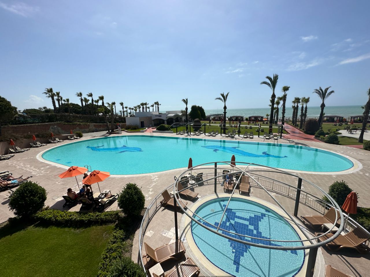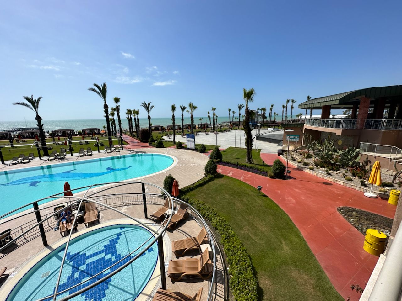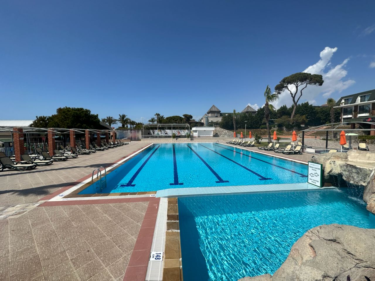 3 крытых бассейна (с морской водой, 1 из них платно - 15$/чел/день, подогрев в зимний период), часы работы 09:00-20:00. |