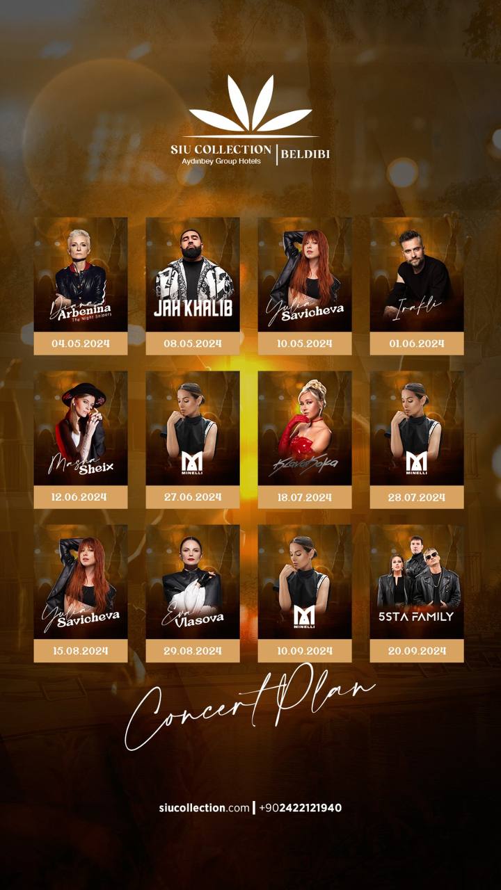 04.05.2024 Д.Арбенина и "Ночные снайперы", 08.05.2024 Jah Khalib, 10.05.2024 Юлия Савичева, 01.06.2024 Иракли, 12.06.2024 Маша Шейх, 27.06.2024 Минелли, 18.07.2024 Клава Кока, 28.07.2024 Минелли, 15.08.2024 Юлия Савичева, 29.08.2024 Ева Власова, 10.09.2024 Минелли, 20.09.2024 5sta Family |