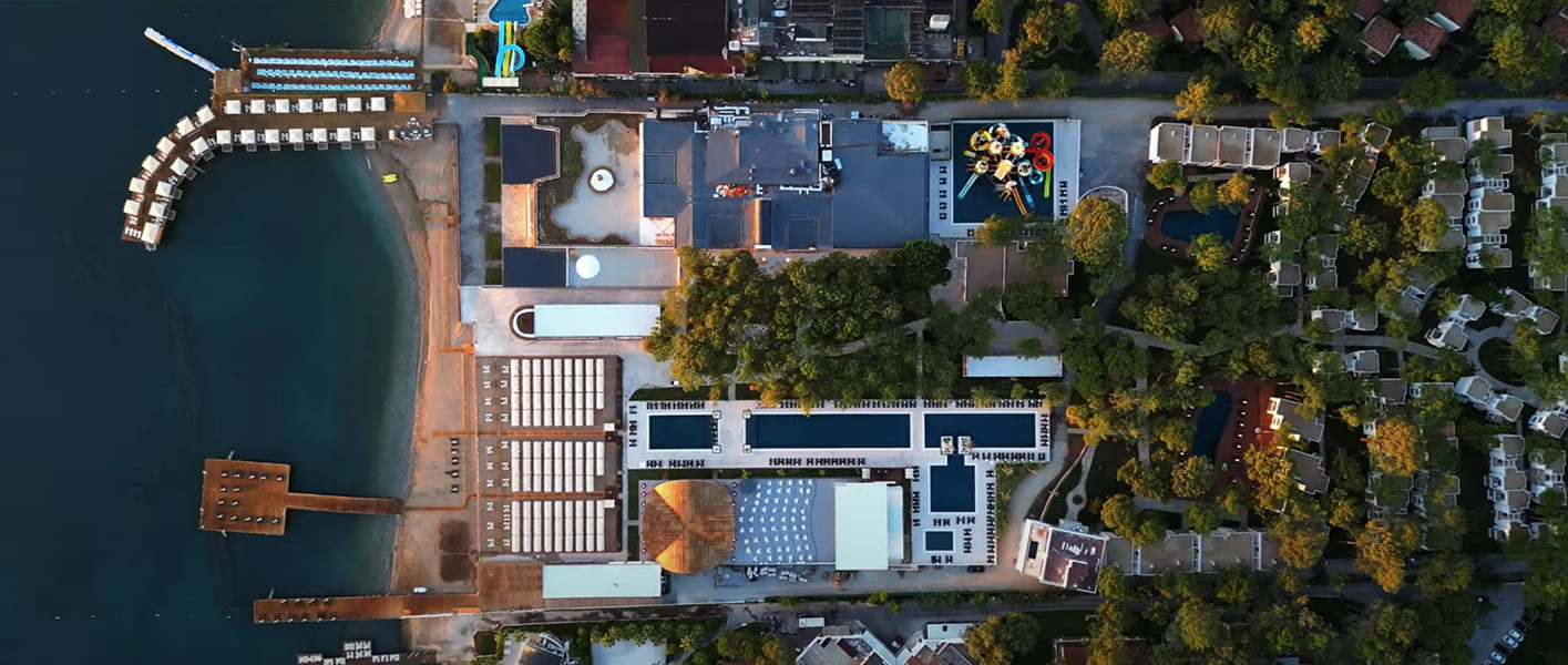 Отель состоит из 68-ми двух- и трехэтажных коттеджей: