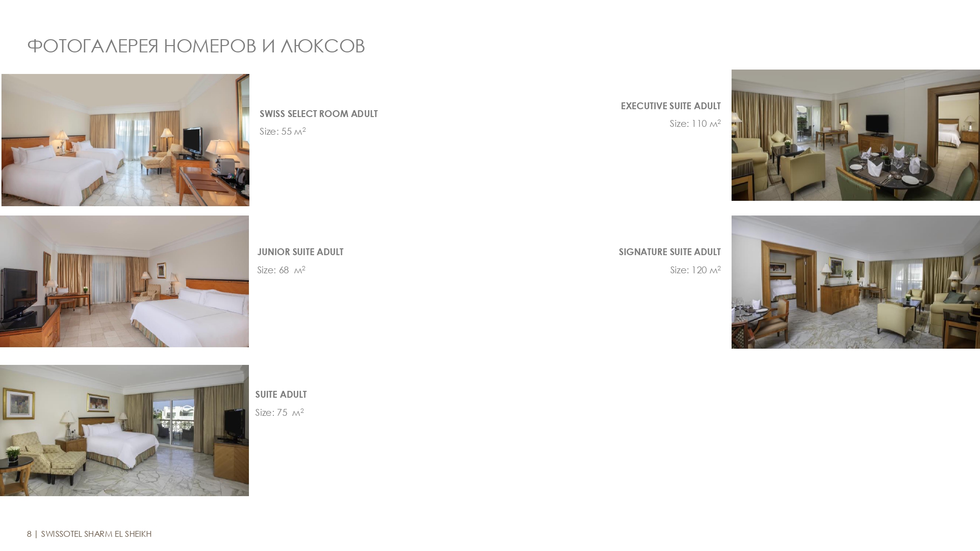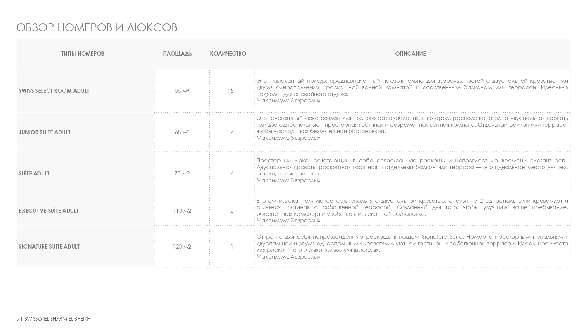 - 1 SIGNATURE SUITE ADULT 120 м2 Откройте для себя непревзойденную роскошь в нашем Signature Suite. Номер с просторными спальнями, 3 односпальными кроватями, уютной гостиной и собственной террасой. Идеальное место для роскошного отдыха только для взрослых. Максимум: 4 взрослых