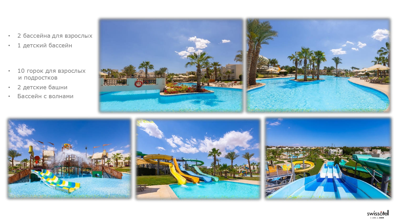 10 бассейнов Аквапарка 3.200 кв.м. |
