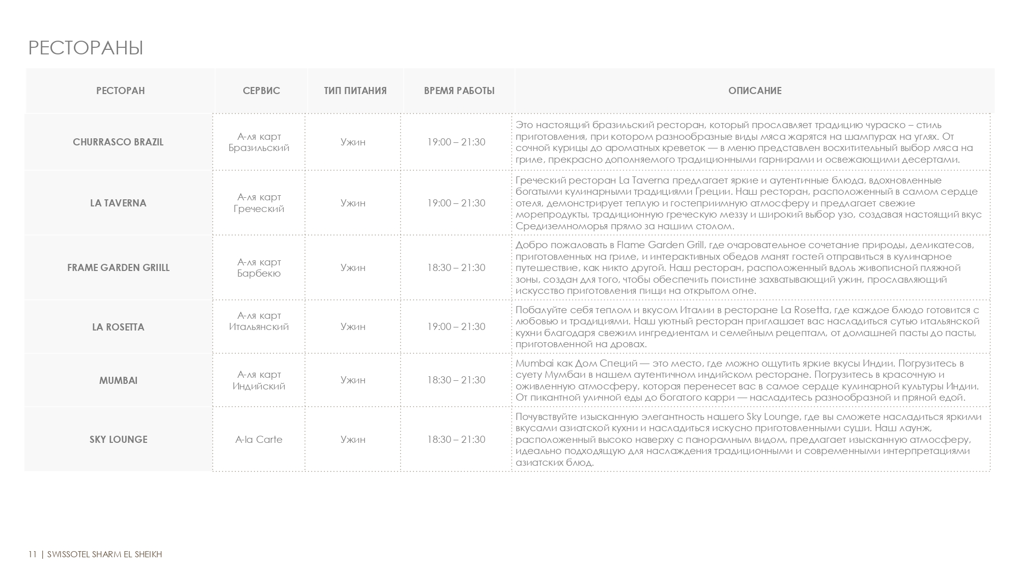 - Все рестораны по меню включены в концепцию (без доплат).