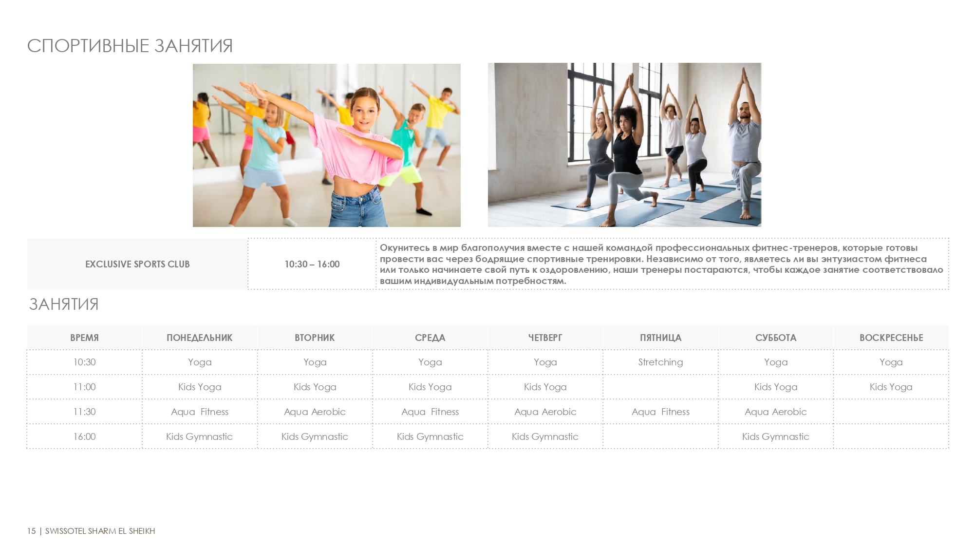 Exclusive Sport Club (16+), часы работы 10:30 – 16:00. |