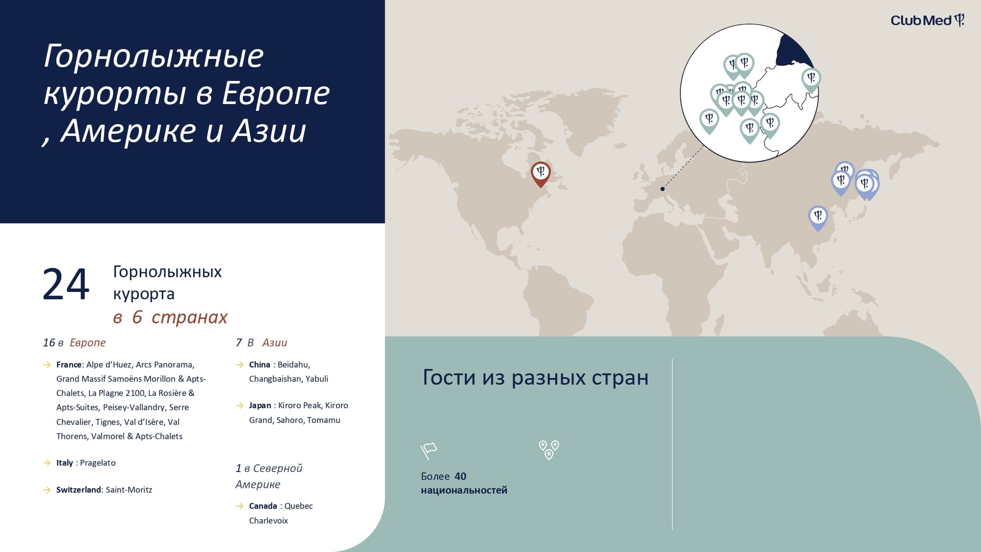 Club Med представлен на 24 горнолыжных курортах в 6 странах мира: