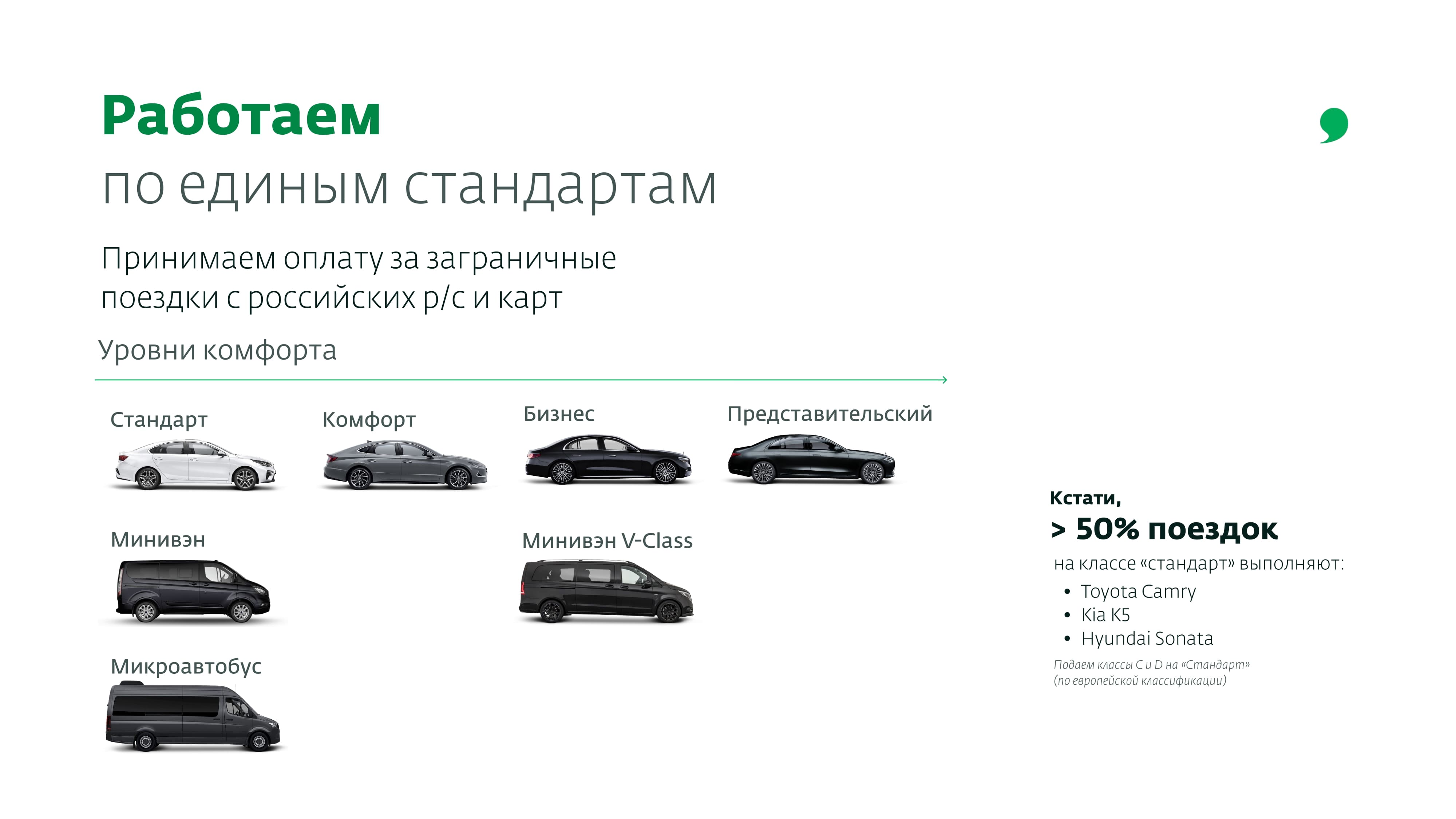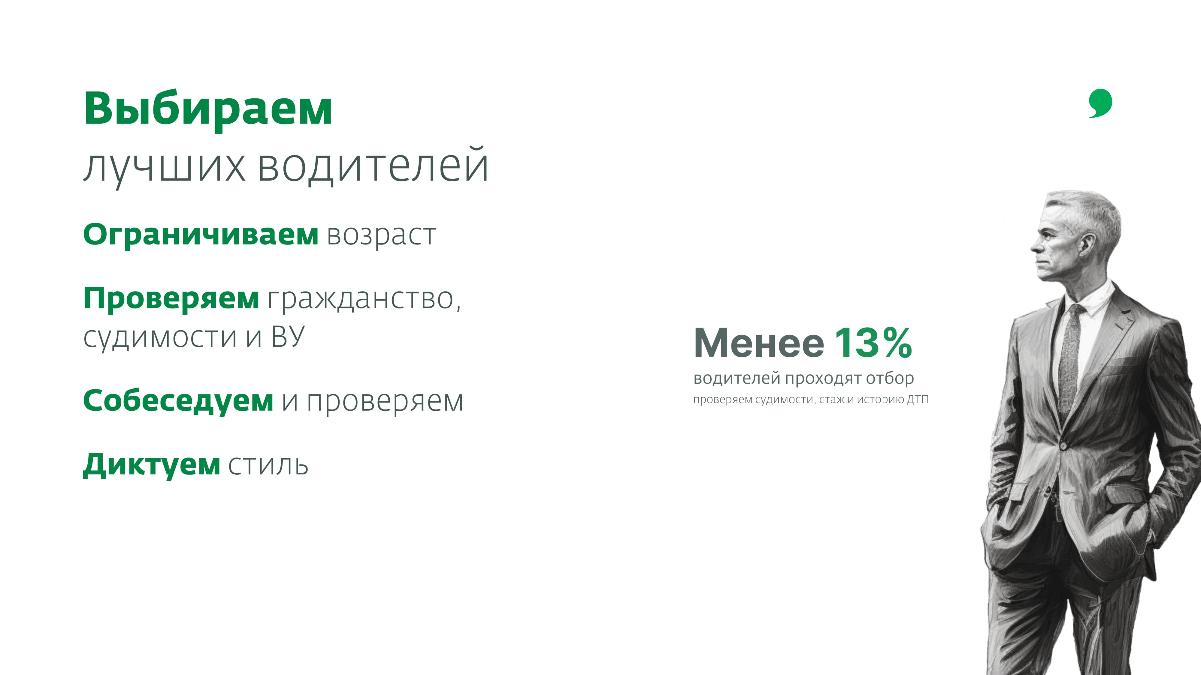 - Наличие высоких стандартов обслуживания и отбора водителей.
