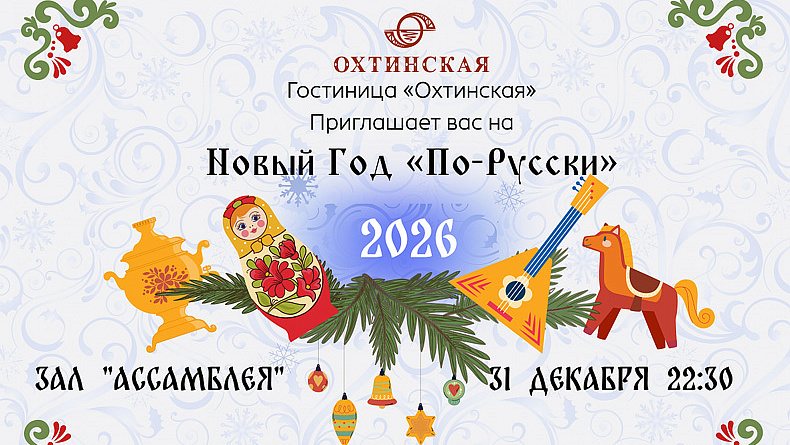 - Новогодний банкет в отеле «Охтинская» (9 000 руб.): Хлебосольный пир в стиле Новогодней Руси! Мастер-класс по русско-народному танцу, частушечный баттл, интерактивная фотозона в русском стиле, создание оберегов и сувениров своими руками, розыгрыш подарков.
