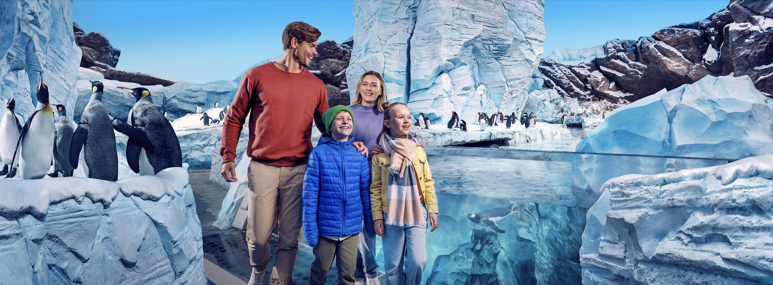 Парк расположен в закрытом помещении, что делает его круглогодично комфортным: жара снаружи может достигать +45 °C, а внутри — стабильные +22 °C и лёгкий морской бриз от аквариумов.