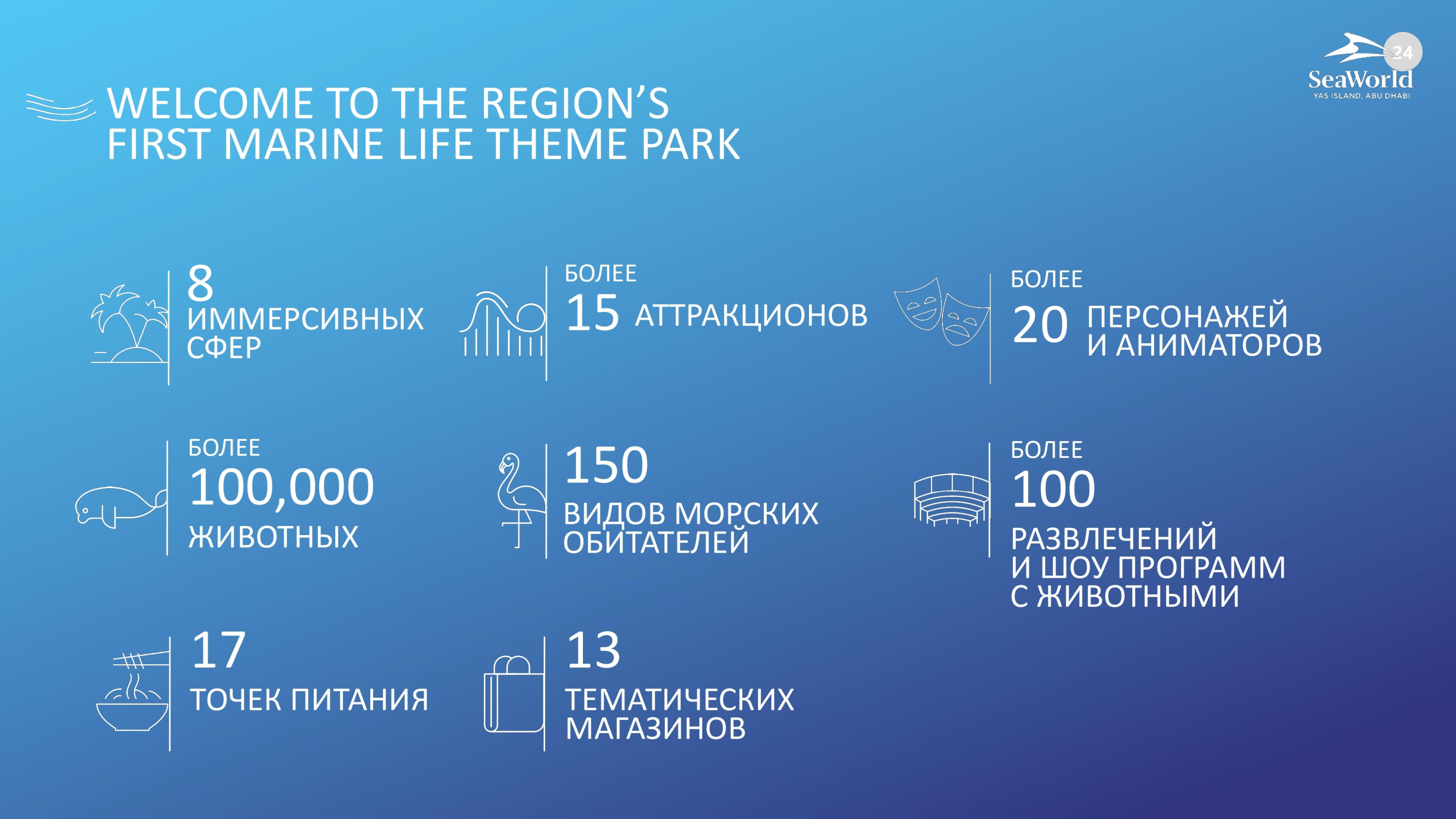 - Abu Dhabi Ocean — культурная зона, рассказывающая о связях между морем и Эмиратами: здесь можно узнать про традиции ловли жемчуга, морскую кухню и приключения арабских моряков.