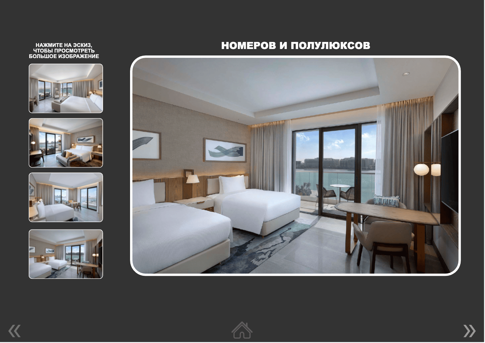 - Two Double Beds One Bedroom Suite With Yas Theme Park Access (гостиная и спальня, 2 односпальные кровати, балкон, макс. 3+1 чел., 58 м2);