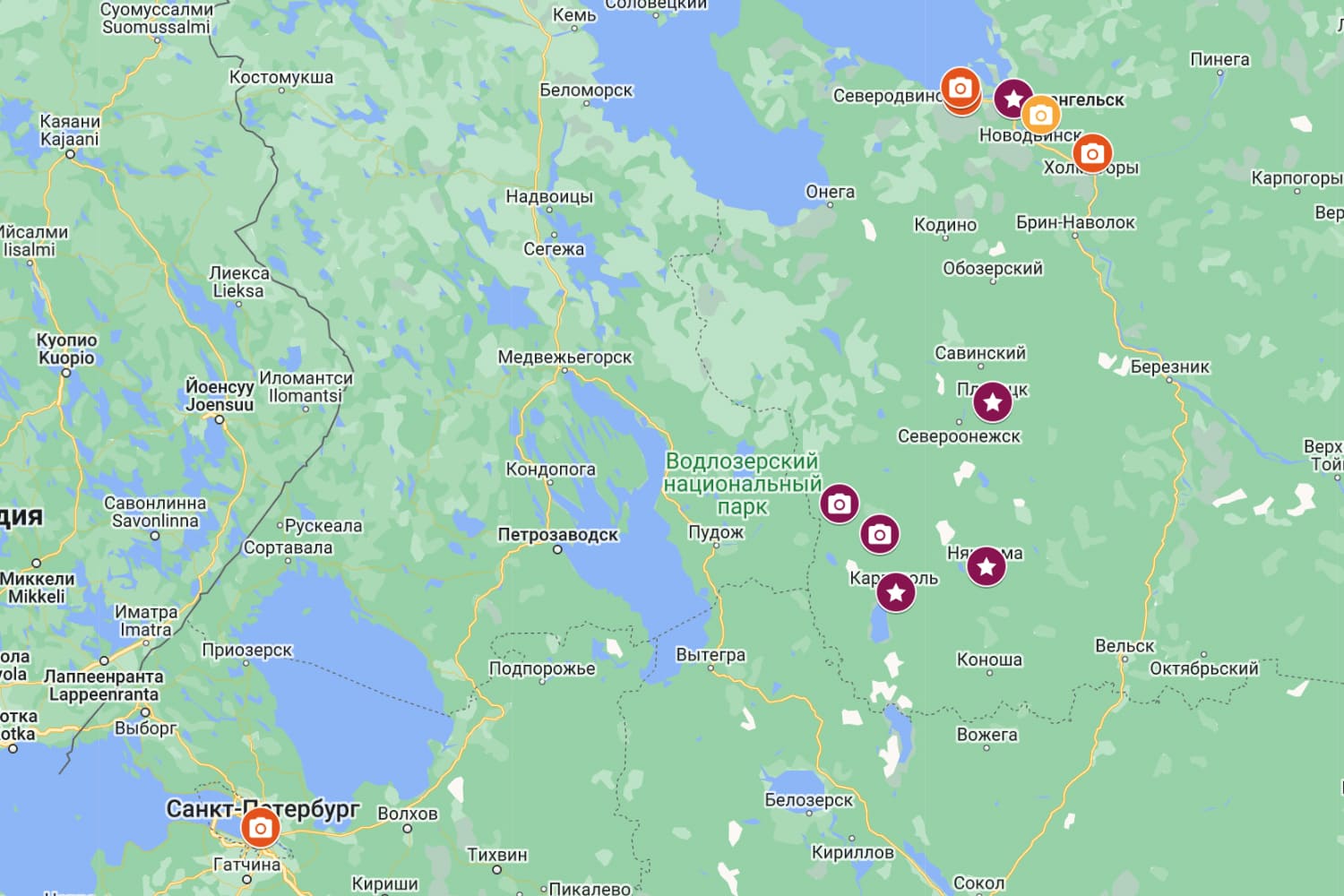 – Няндома – Кенозерский заповедник (ЮНЕСКО) – Каргополь – Ошевенская волость – Плесецк – Архангельск (4 ночи, отель 3*) – Теплоход по Северной Двине* – музей Лоцманской славы* – Северодвинск* – Музей с макетом подводной лодки* – остров Ягры в Белом море* – Холмогоры* – Музей-усадьба Ломоносова* – музей Малые Корелы* – историко-архитектурный комплекс «Архангельские Гостиные Дворы»* |