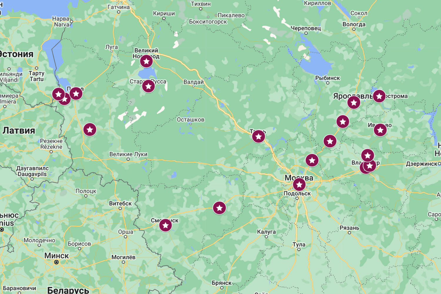 Владимирская область, Ивановская область, Костромская область, Московская область, Новгородская область, Псковская область, Смоленская область, Тверская область, Ярославская область |